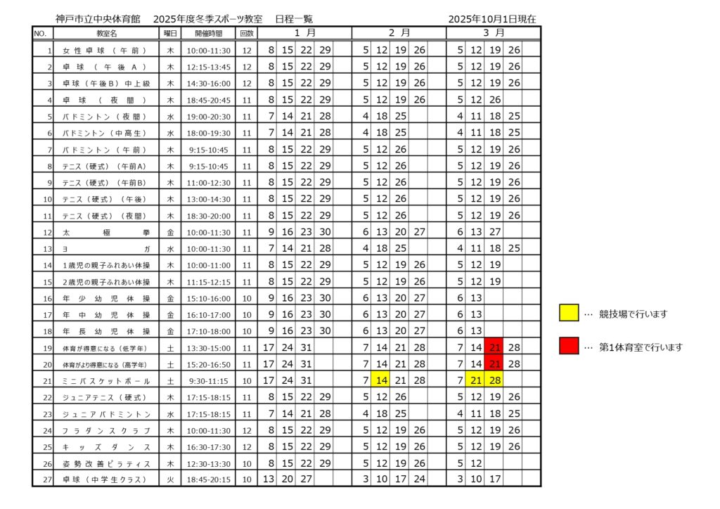 2025年度 冬期 スポーツ教室ご案内(2026年1月スタート)